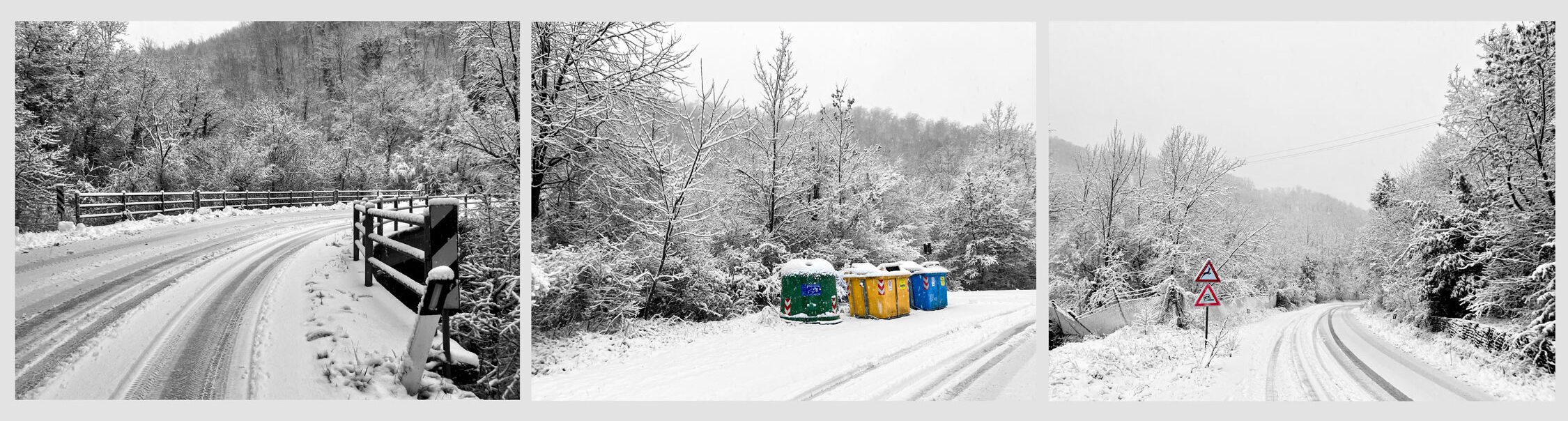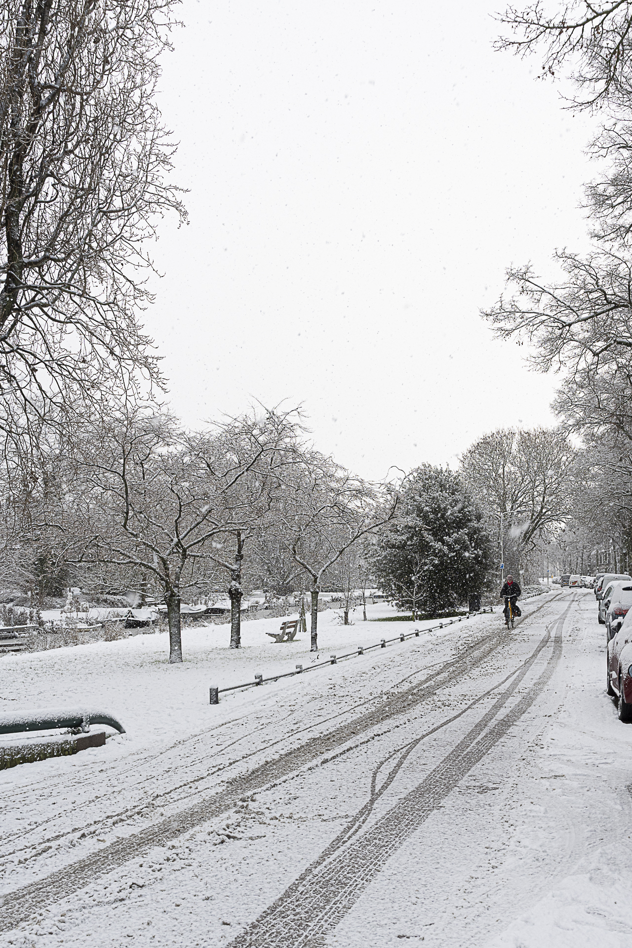 - Veel besneeuwde wegen deze keer. De foto’s lijken qua onderwerp op elkaar. Beide gebruiken mooie lijnen naar het verdwijnpunt in de vorm van sporen en een hekje. De details in de sneeuw zijn bij beide heel mooi. Wel is er een interessant verschil qua perspectief: bij foto 1 kijk je als het ware door de ogen van de fotograaf naar een plek aan de horizon, terwijl bij foto 3 het perspectief veel meer vanuit de fietser ligt, d.w.z. naar je toe.